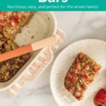 It’s a healthy toddler breakfast you can make ahead of time or a homemade toddler snack idea that can be enjoyed at home or taken on the go. It’s rich in fiber from the oats, protein from eggs and milk, plus natural sweetness from fruit.