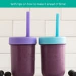 You can store this smoothie for up to 24 hours in airtight containers in the refrigerator. (Mine are in these WeeSprout jars.) Note: Storing blueberry smoothies works best if you use wild frozen blueberries, as they will not cause the mixture to thicken as it sits in an undesirable way like regular ones do.