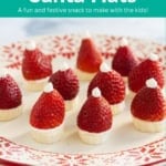 This easy holiday dessert or finger food takes zero forethought (other than having the ingredients), and it’s interactive. The little Santa hats are fun to make and eat!