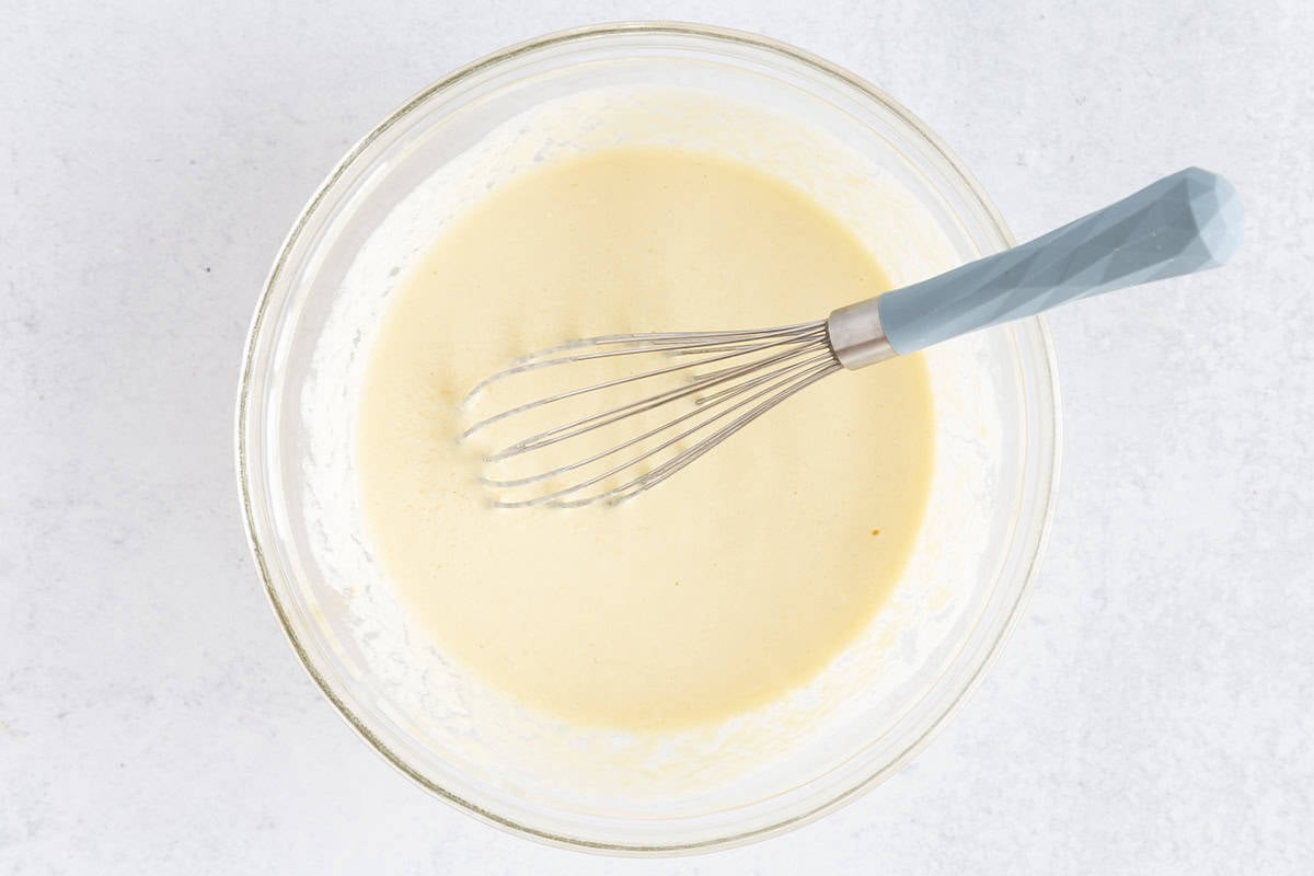 - Add the yogurt, milk, eggs, and butter to a medium bowl. Whisk to combine Into a smooth mixture.