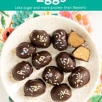 With just f5 ingredients and a ten-minute method, these super easy Peanut Butter Eggs are so fun for spring. They’re like Reese’s Peanut Butter Eggs, but with less added sugar and more protein!