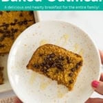 This Pumpkin Baked Oatmeal is a delicious and hearty breakfast to share with the kids. It has all of the flavors of pumpkin pie but the nutrition of a bowl of oatmeal.